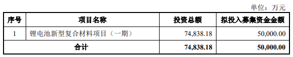 可川科技2025年9月12日披露的向不特定对象发行可转换公司债券募集说明书(修订稿)显示,本次向不特定对象发行可转债拟募集资金总额不超过50,000.00万元(含本数),扣除发行费用后募集资金净额将用于锂电池新型复合材料项目(一期)。