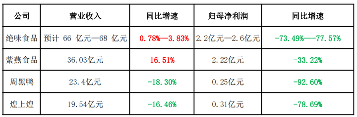 相比而言,期内紫燕食品在净利润方面表现优于同行,约2.22亿元,但也同比下滑了33.22%。