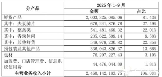 从产品来看,公司前三季度鲜货产品整体收入为20.03亿元,同比下降11.33%,其中核心产品夫妻肺片收入为6.76亿元,同比下降15.91%,整禽类产品收入同比下降16.10%至5.41亿元。