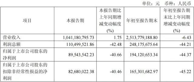 三季报显示,今年前三季度,紫燕食品实现营收25.14亿元,同比减少6.43%;实现归母净利润1.94亿元,同比下滑44.37%。其中,Q3营收虽同比微增1.75%至10.41亿元,但归母净利润仍大幅下降40.66%至8954.35万元。
