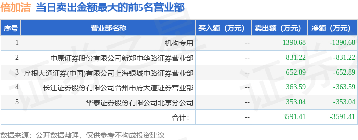 10月29日倍加洁(603059)龙虎榜数据:机构净卖出1390.68万元