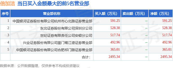 证券之星消息,沪深交易所2025年10月29日公布的交易公开信息显示,倍加洁(603059)因有价格涨跌幅限制的日收盘价格跌幅偏离值达到7%的前五只证券登上龙虎榜。此次是近5个交易日内第1次上榜。