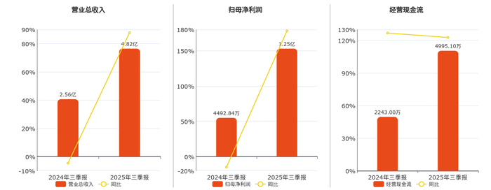 公司营业总收入为4.82亿元。归母净利润为1.25亿元。经营活动现金净流入为4995.10万元。
