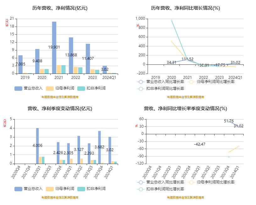 2024年第一季度,公司毛利率为20.37%,同比下降16.92个百分点;净利率为9.36%,较上年同期下降15.09个百分点。