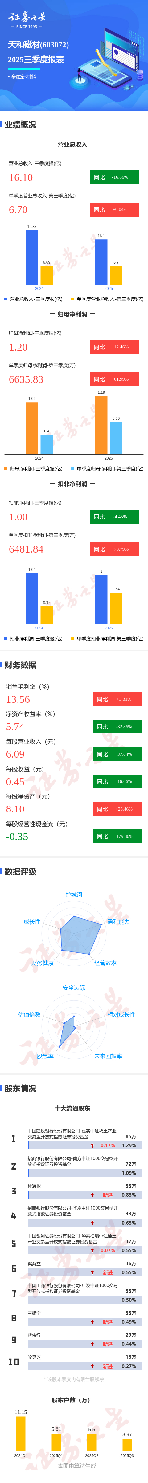 图解天和磁材三季报:第三季度单季净利润同比增长61.99%