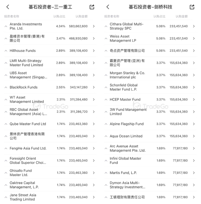 绿鞋方面,滴普科技、八马茶业上市无绿鞋;三一重工的绿鞋资金约20.18亿港元,稳价人为中信里昂;剑桥科技的绿鞋资金约6.92亿港元,稳价人为国泰君安国际。