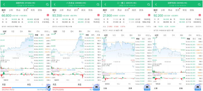 10月28日,滴普科技(1384.HK)、八马茶叶(6980.HK)、三一重工(6031.HK)、剑桥科技(6166.HK)同日登陆港交所,其中TradeGoMarkets担任八马茶业联席牵头经办人,弗若斯特沙利文则包揽了四家公司的独家行业顾问。