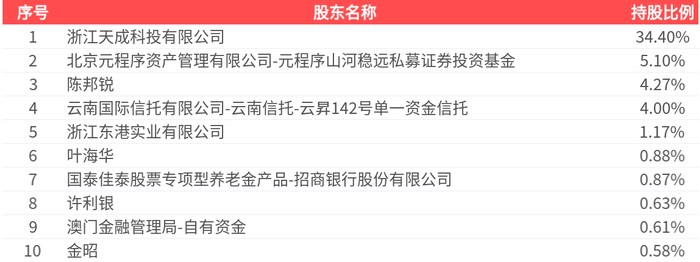 公司股东户数为2.54万户,前十大股东持股数量为2.09亿股,占总股本比例为52.52%,前十大股东持股情况如下: