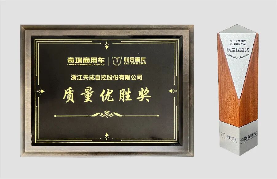 11月7日,奇瑞商用车盛大举办“瑞启新程 1路同行”新能源重卡单月产销突破千台下线仪式暨全球战略合作伙伴生态大会。全球战略合作伙伴齐聚,共同见证这一里程碑时刻。天成自控凭借卓越的产品质量与可靠性能,荣获质量优胜奖。”