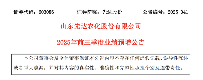 10月14日,山东先达农化股份有限公司(603086)发布2025年前三季度业绩预增公告。公司预计,2025年1—9月实现归属于上市公司股东的净利润1.8亿元到2.05亿元,同比大幅增长2807.87%到3211.74%。