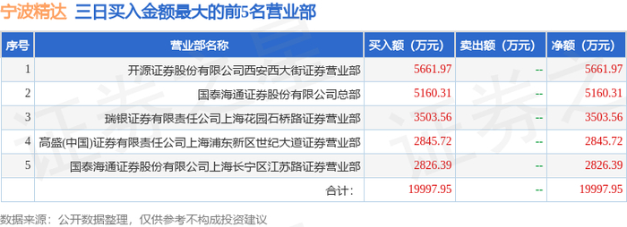 10月29日宁波精达(603088)龙虎榜数据:游资章盟主上榜