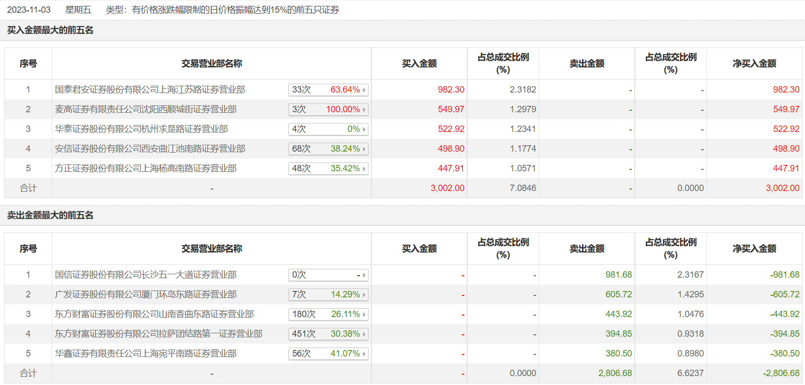 具体来看,知名游资现身龙虎榜,章盟主(国泰君安证券上海江苏路证券营业部)、麦高证券沈阳西顺城街证券营业部分别买入982.30万元、549.97万元;国信证券长沙五一大道证券营业部、广发证券厦门环岛东路证券营业部分别卖出981.68万元、605.72万元。
