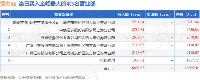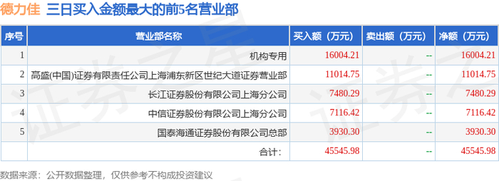 11月20日德力佳(603092)龙虎榜数据:机构净买入1.6亿元(3日)