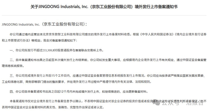 京东工业于9月19日通过备案,拟发行不超过253,309,800股普通股并在香港联合交易所上市。公司于2023年4月在证监会备案,期间递表时间间隔一年半,一段时间处于停滞状态,且公司是VIE架构,通过备案历时896天。