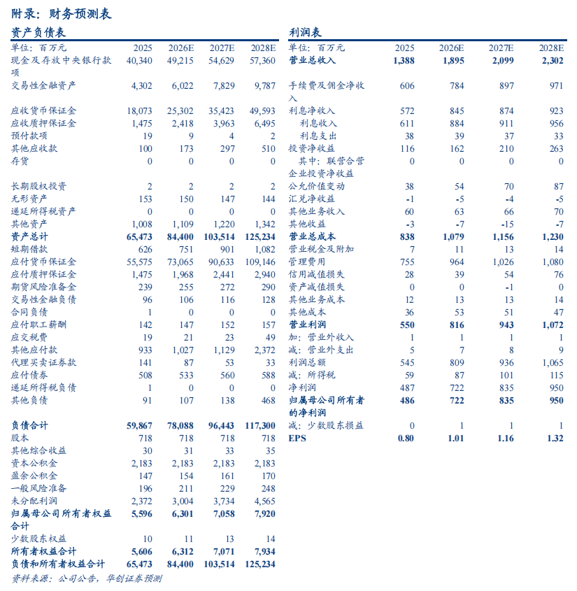 净资本充容支撑业务边界扩张,权益承载空间翻倍。截至2025年末,公司境外客户权益规模达到233.06亿港元(yoy+68.9%)。随着H股募资到位,横华国际注册资本将由此前的8.26亿港元增至20.29亿港元。在境外资本充足率监管框架下,考虑增资到位+利润沉淀,公司资本实力足以支撑客户权益规模大幅增长,结合现有的杠杆利用情况,预估境外权益中枢有望升至400亿港币,为后续承接大型境内外企业需求及机构资金提供了充足的资本底座。