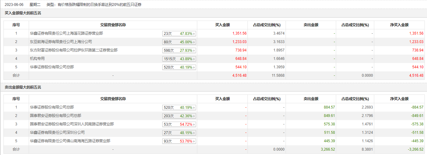 具体来看,机构合计净买入648.84万元。此外,华鑫证券上海莲花路证券营业部、东亚前海证券上海分公司分别买入1351.56万元、1233.03万元;华泰证券总部、国泰君安证券总部分别卖出884.57万元、849.61万元。