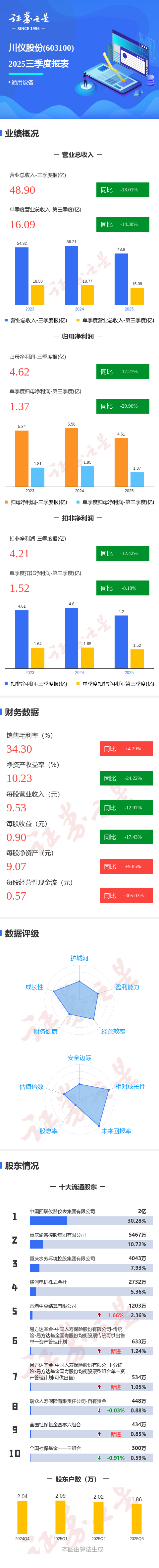图解川仪股份三季报:第三季度单季净利润同比下降29.91%