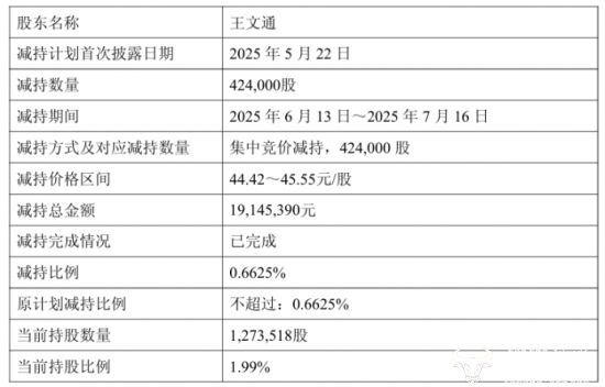 值得一提的是,在今年7月份,王文通通过集中竞价方式减持公司股份42.40万股,累计套现约1914.54万元。