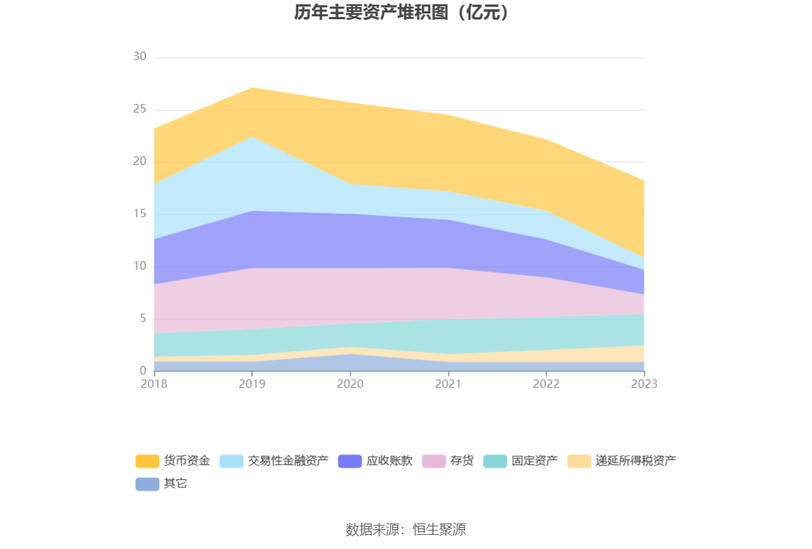 资产重大变化方面,截至2023年年末,公司货币资金较上年末增加8.31%,占公司总资产比重上升9.76个百分点;存货较上年末减少50.60%,占公司总资产比重下降6.77个百分点;交易性金融资产较上年末减少57.65%,占公司总资产比重下降5.94个百分点;应收账款较上年末减少36.01%,占公司总资产比重下降3.66个百分点。