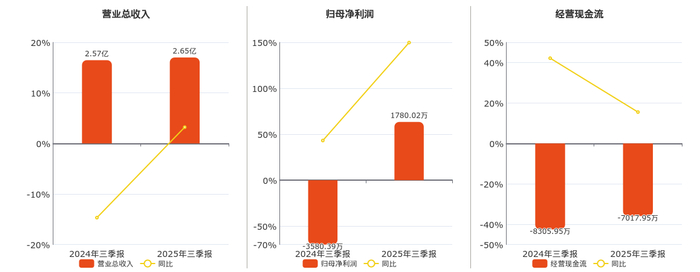 公司营业总收入为2.65亿元,在已披露的同业公司中排名第45。归母净利润为1780.02万元,在已披露的同业公司中排名第31。经营活动现金净流入为-7017.95万元,在已披露的同业公司中排名第52。