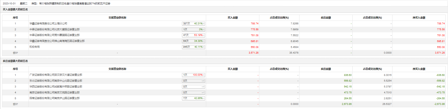 10月31日,康尼机电(维权)今日涨停,全天换手率达2.42%,振幅达4.62%。龙虎榜数据显示,营业部席位合计净买入897.4万元。其中,机构合计净买入550.08万元。此外,华鑫证券上海分公司、中泰证券北京大望路证券营业部分别买入788.74万元、775.56万元;广发证券武汉京汉大道证券营业部、东北证券南京中山北路证券营业部分别卖出836.60万元、556.82万元。