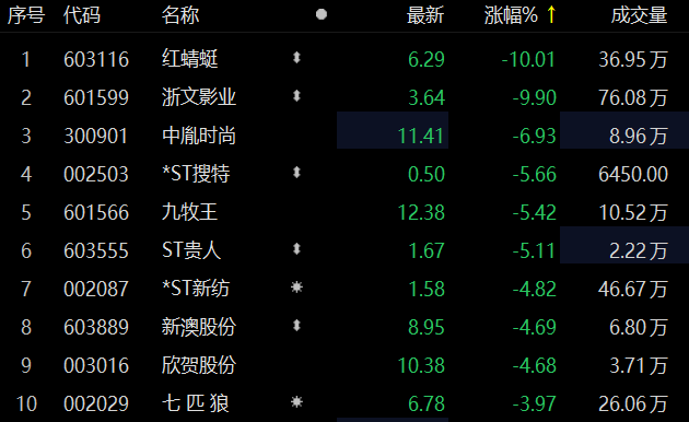 纺织服装板块调整 红蜻蜓跌停