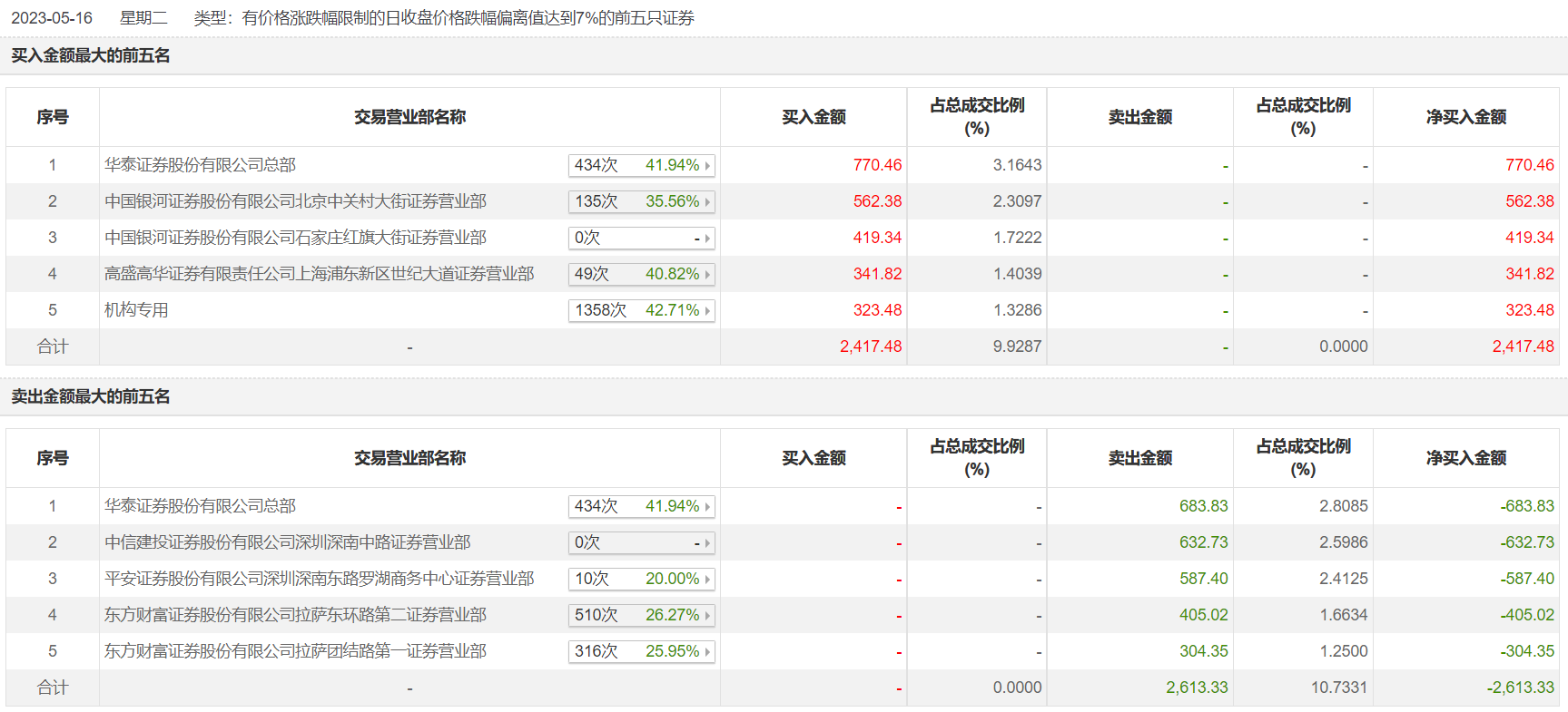 具体来看,机构合计净买入323.48万元。此外,华泰证券总部、中信建投证券深圳深南中路证券营业部分别卖出683.83万元、632.73万元;华泰证券总部、中国银河证券北京中关村大街证券营业部分别买入770.46万元、562.38万元。