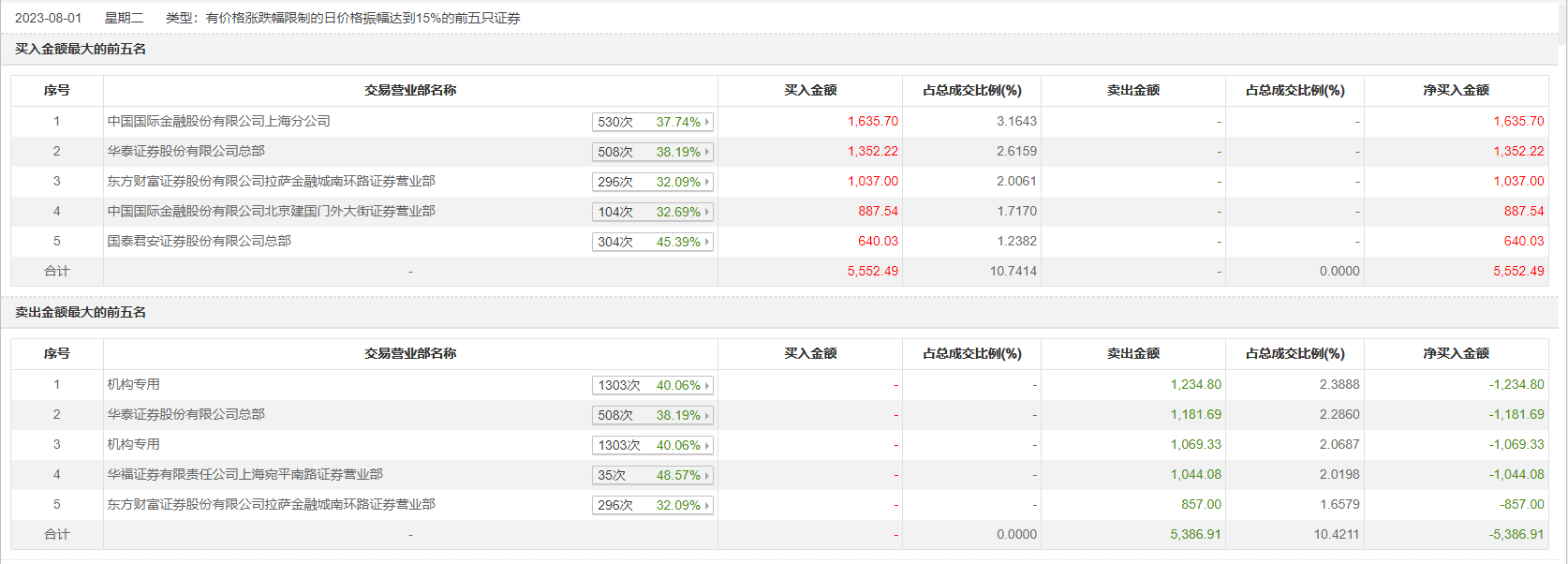 具体来看,机构合计净卖出2304.14万元。此外,华泰证券总部、华福证券上海宛平南路证券营业部分别卖出1181.69万元、1044.08万元;中国国际金融上海分公司、华泰证券总部分别买入1635.70万元、1352.22万元。