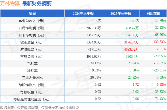 万林物流(603117)2025年三季报简析:净利润同比下降32.13%,公司应收账款体量较大