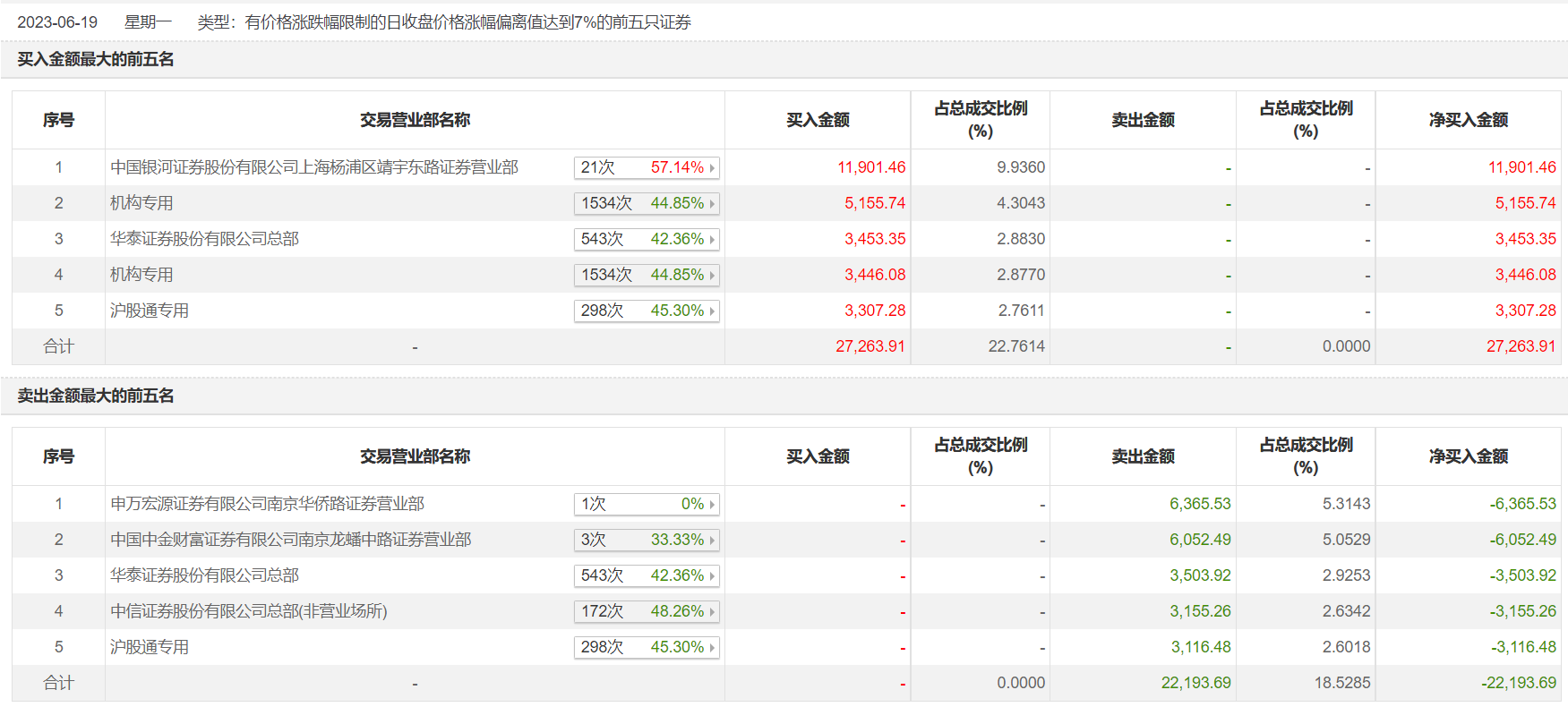 具体来看,机构合计净买入8601.82万元。此外,中国银河证券上海杨浦区靖宇东路证券营业部、华泰证券总部分别买入1.19亿元、3453.35万元;申万宏源证券有限公司南京华侨路证券营业部、中国中金财富证券有限公司南京龙蟠中路证券营业部分别卖出6365.53万元、6052.49万元。