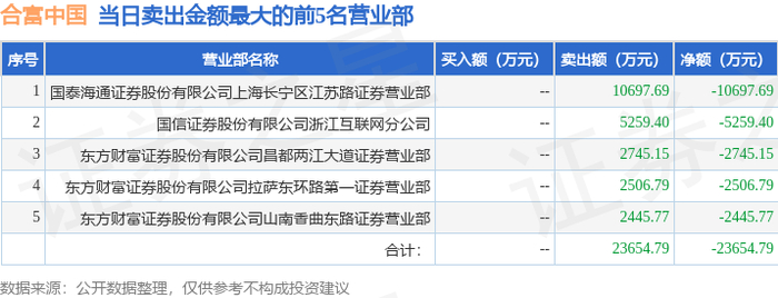 12月30日合富中国(603122)龙虎榜数据:游资章盟主、宁波桑田路上榜