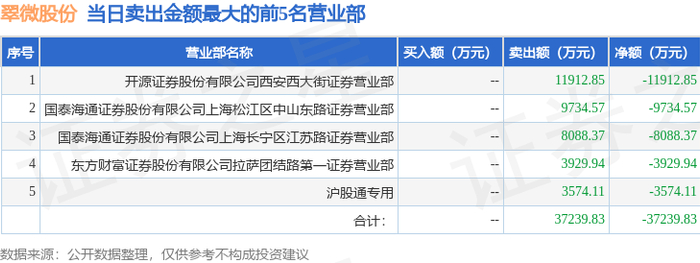 12月30日翠微股份(603123)龙虎榜数据:游资流沙河、上海中山东路、章盟主上榜