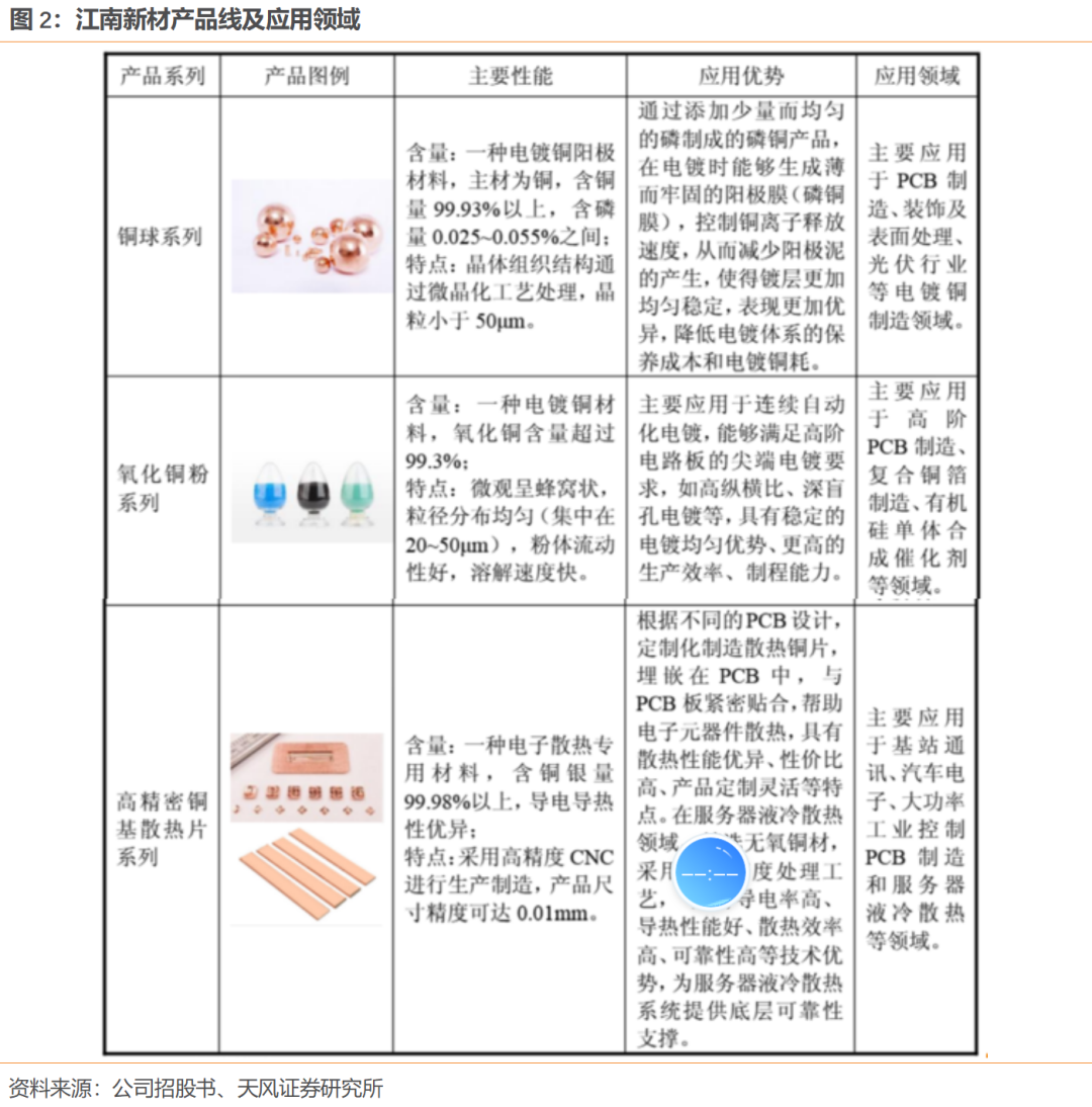 公司产品主要为铜球、氧化铜粉及高精密铜基散热片,下游主要是PCB和液冷。