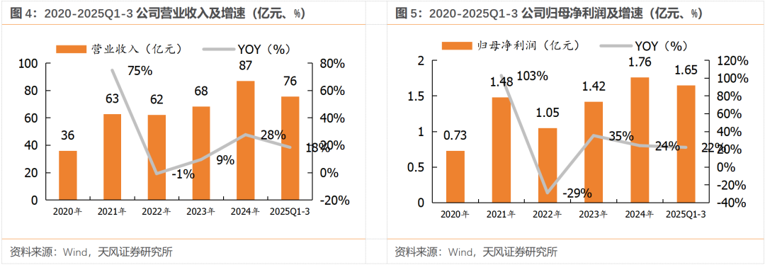 公司业绩持续向好,2020-2025Q1-3年实现营收与盈利的双增长。