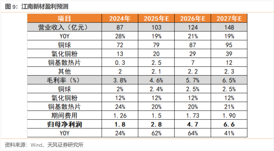 -氧化铜粉:25-27年收入增速50%、45%、35%,毛利率在12%左右。
