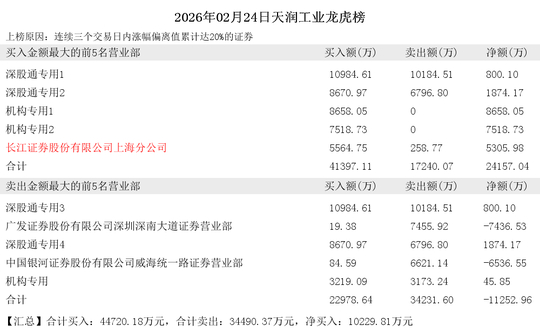【汇总】合计买入:44720.18万元,合计卖出:34490.37万元,净买入:10229.81万元。