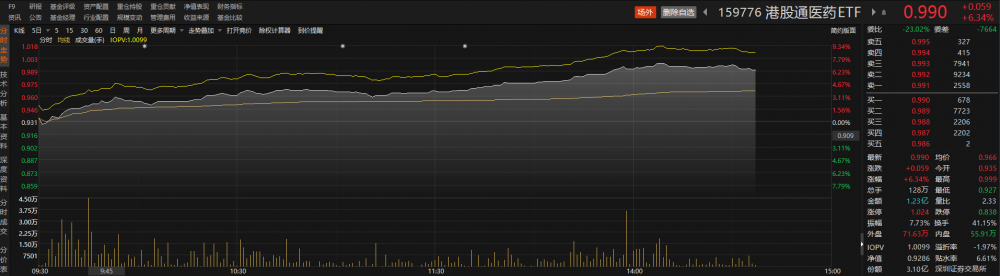 此外,跟踪中证港股通医药卫生综合指数的港股通医药ETF(159776)午后同样继续走高,交投持续活跃。截至发稿,该ETF大涨超6%,换手率超41%。