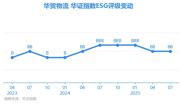 日前,华证指数公布了新一期(2025年7月31日)的ESG评级结果,华贸物流(603128.SH)获得BB评级(华证指数评级为C起至AAA九档,C为最低档,AAA为其最高一级评级/AA为其第二档),上一期(2025年4月30日)ESG评级为BB。本期ESG评级在34家航空货运与物流行业A股上市公司中排名第20(上一期排名第19)。