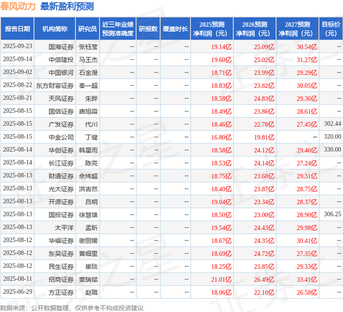 最新盈利预测明细如下: