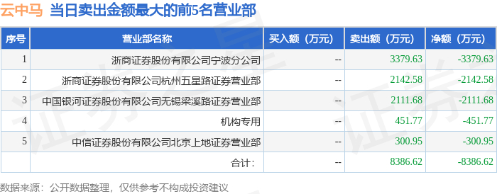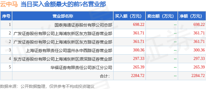 11月12日云中马(603130)龙虎榜数据:游资上海东方路、毛老板上榜
