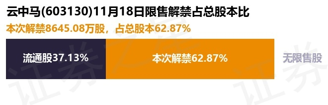 云中马(603130)8645.08万股限售股将于11月18日解禁,占总股本62.87%