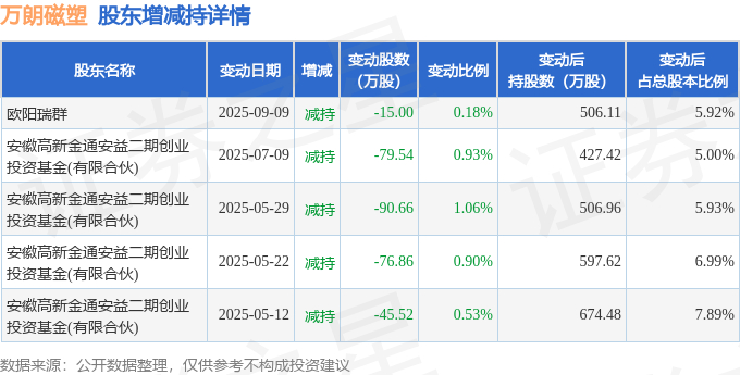 截至2025年9月25日收盘,万朗磁塑(603150)报收于41.13元,上涨1.73%,换手率7.53%,成交量6.44万手,成交额2.7亿元。