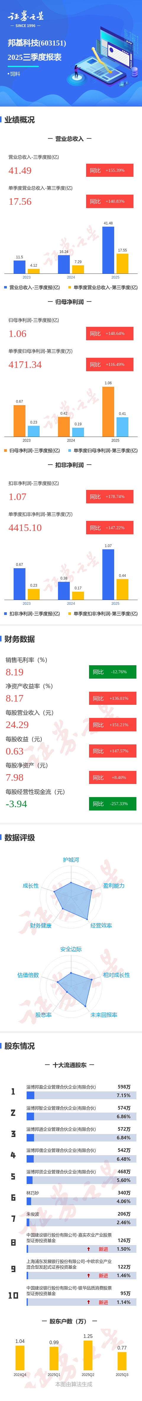 图解邦基科技三季报:第三季度单季净利润同比增长116.49%