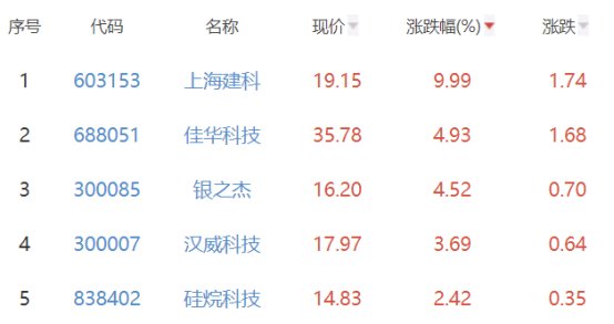 其中,上海建科、佳华科技、银之杰、汉威科技、硅烷科技位列板块涨幅榜前五位,涨幅分别为9.99%、4.93%、4.52%、3.69%、2.42%。