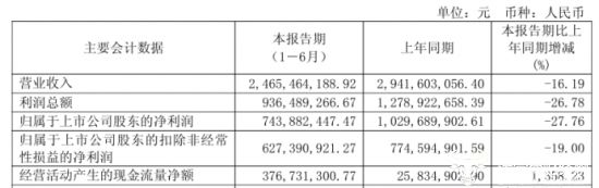 养元饮品多元化的投资,可能源于其主营业务的承压。据养元饮品2025年半年度报告,今年上半年,公司营业收入为24.65亿元,同比下降16.19%,归母净利润7.44亿元,同比下降27.76%,营收和利润双双下降,创近三年同期新低。而对于营业收入的下滑,养元饮品解释称,主要原因是公司核桃乳产品销量下降,但在半年报中未透露今年上半年核桃乳的销量。