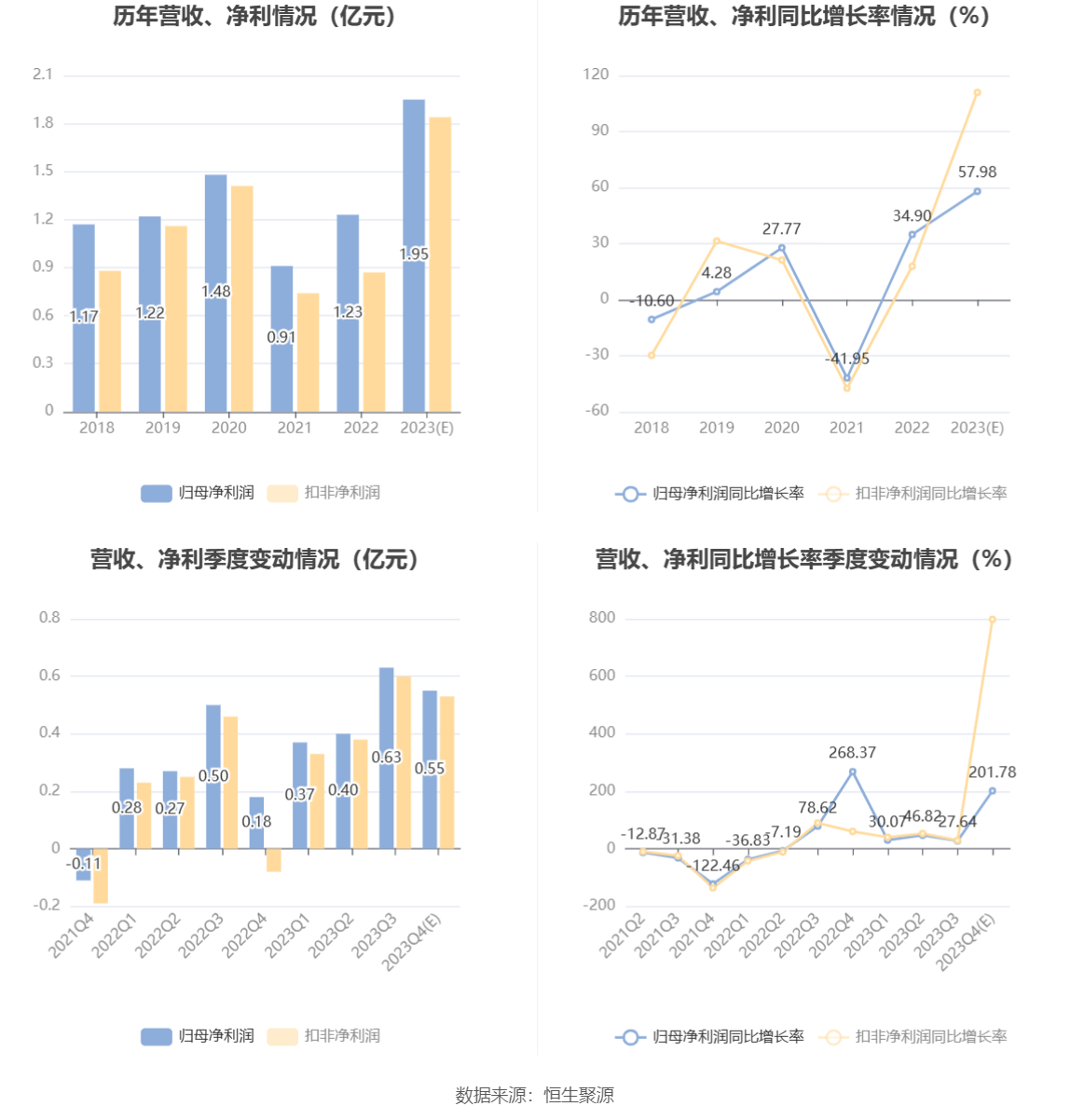 中证智能财讯 腾龙股份(603158)1月23日披露2023年度业绩预告,预计2023年度归母净利润为1.80亿元至2.10亿元,同比增长45.83%-70.14%;扣非净利润为1.70亿元至1.98亿元,同比增长94.91%-127.01%。以1月22日收盘价计算,腾龙股份目前市盈率(TTM)约为18.02倍至21.02倍。
