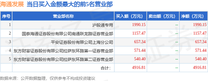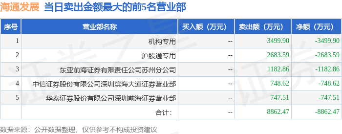 11月18日海通发展(603162)龙虎榜数据:机构净卖出3499.9万元,北向资金净卖出693.44万元