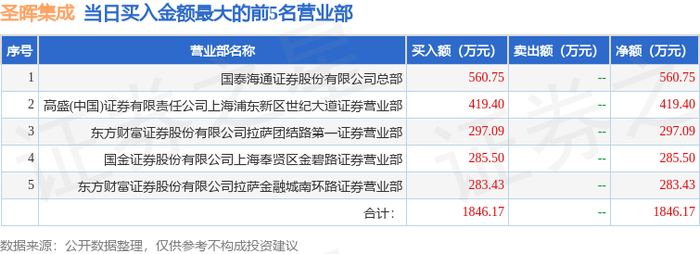 11月7日圣晖集成(603163)龙虎榜数据:机构净卖出2955.55万元