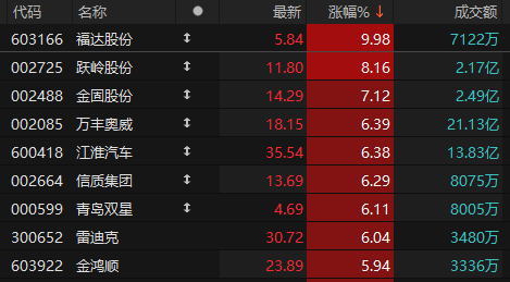 上证报中国证券网讯 10月22日早盘,汽车板块拉升走高。截至9时37分,