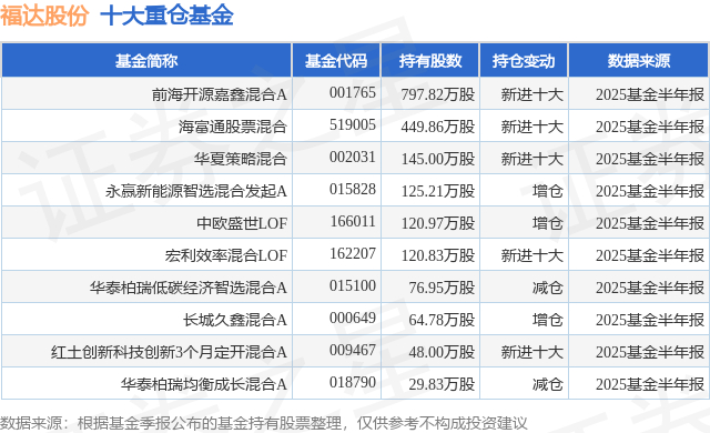 重仓福达股份的前十大公募基金请见下表: